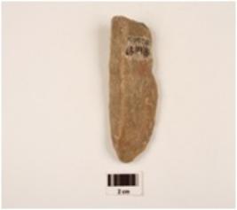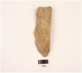 | Description / विवरण | Side Scraper made on end struck quartzite flake, partly retouched cutting edge, flake scars on dorsal surface, rectangular in section. |