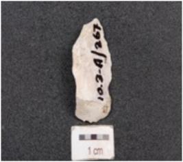 | Description / विवरण | A bade cum burin has medial ridge ,retouched working edge and slightly curved pointed working end. |