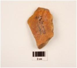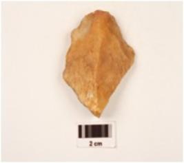 | Description / विवरण | Scraper made on end struck flake, triangular in section, flake scars with prominent ridge on dorsal surface, regular retuches along cutting edges. |