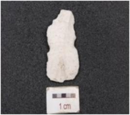 | Description / विवरण | A broken blade has prepared platform, prominent bulb on ventral side, broken distal end and use-wear marks along the cutting edges. |