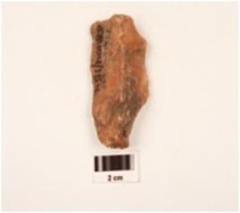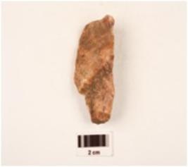 | Description / विवरण | Side Scraper made on end struck chert flake prominent bulb on ventral surface, partly retouched cutting edges, a prominent ridge on dorsal surface with flake scars , triangular in section. |