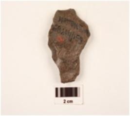 | Description / विवरण | Scraper made on side struck flake, flake scars on dorsal surface, diffused bulb on ventral surface, irregular retouches on cutting edges, smooth surface triangular in section. |