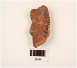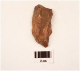 | Description / विवरण | Flake made on chert flake scars on dorsal surface, use wear marks along cutting edge. |