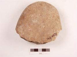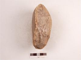 | Description / विवरण | A unificial chopper made on quartzite pebble, flake scars on one side surface, irregular cutting edge at anterior end, butt end at posterior, surface is smooth and plano-convex in section. |