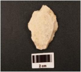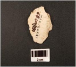 | Description / विवरण | Scraper made on side struck chert flake, flake scars on dorsal surface positive bulb on ventral surface, regular retouches along cutting edges. |