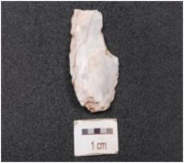 | Description / विवरण | A blade cum burin has use wear marks on edges and slightly curved pointed working end. |