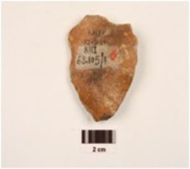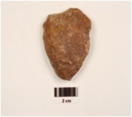 | Description / विवरण | A scraper made on end struck chert flake, flake scars on dorsal side, prepared platform on proximal end. Bulb of percussion on ventral side. Use wear marks broad head cutting edge. |