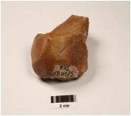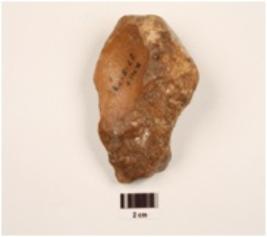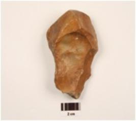 | Description / विवरण | A handaxe made on pebble plartly retouch along cutting edge on anterior end and cortex on posterior end flake scars on both surface. |