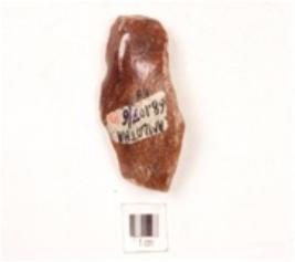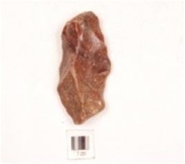 | Description / विवरण | A flake made on chert flake scars on dorsal uneven in shape, irregular retouch marks on edges, diffused bulb on ventral side, polished surface. |