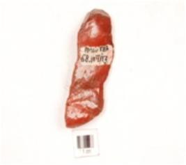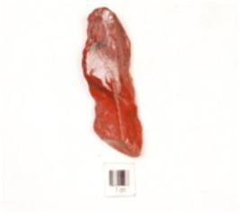 | Description / विवरण | A flake made on chert, mid ridge on dorsal side, use wear marks on edges, prominent bulb on ventral side, glossy surface. |