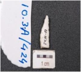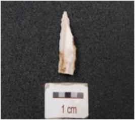 | Description / विवरण | A point has straight pointed working end and blade scars on surface. |