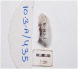 | Description / विवरण | A blade cu burin has use wear marks on edges and pointed end. |