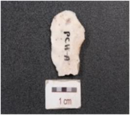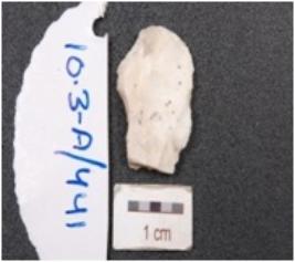 | Description / विवरण | A utilized flake has use wear marks on one side. |