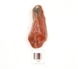 | Description / विवरण | A flake made on chert, flake scars on dorsal side, use wear marks on edges, diffused bulb on ventral side, glossy surface. |