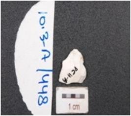 | Description / विवरण | An unfinished burin has blade scars and slightly curved pointed end. |