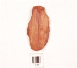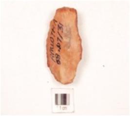 | Description / विवरण | A side scraper made on chert, ridge and flake scars on dorsal side, use wear marks on edges, diffused bulb on ventral side. |