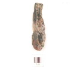| Description / विवरण | A flake made on chert, mid ridges on dorsal side, use wear marks on edges, diffused bulb on ventral side, glossy surface. |