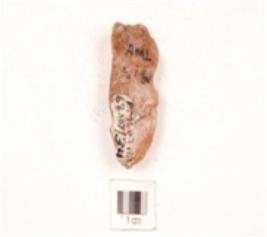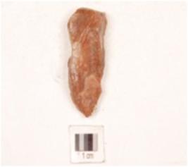 | Description / विवरण | A flake made on chert, flake scars on dorsal side, use wear marks on edges, uneven in shape, glossy surface. |