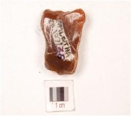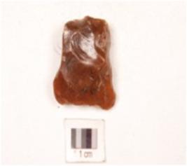 | Description / विवरण | A flake made on chert, flake scars on dorsal and ventral side, use wear marks on edges, glossy surface. |