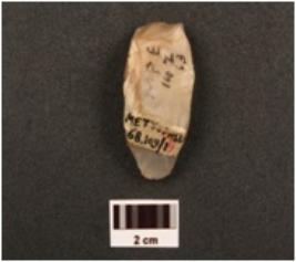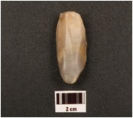 | Description / विवरण | A chalcedony chisel shaped core, parallel flake scars on surface, prepared platform. |