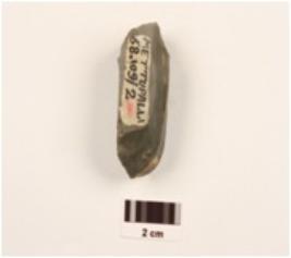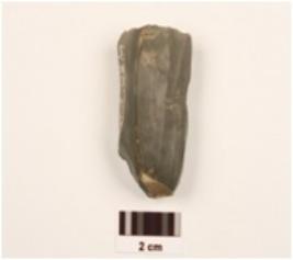 | Description / विवरण | A blade chert fluted core, prepared platform, parallel flake scars on one surface, cross flake scars on another side. |