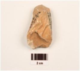 | Description / विवरण | A chert core, parallel flake scars on surface, prepared platform, chisel shaped. |