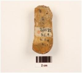 | Description / विवरण | An end scraper made of on a chert pebble, prepared platfrom, diffused bulb at ventral side, intact cortex at one side, visible used wear marks. |