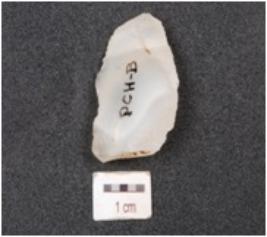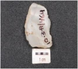 | Description / विवरण | A utilized flake has prepared platform,blade scars and use marks along the cutting edge. |