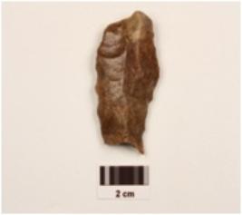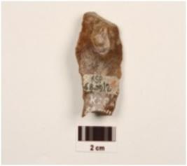 | Description / विवरण | A blade made on an end struck flake of red jasper, prepared platform, prominent bulb at ventral side, cross flake scars on dorsal surface, retouched working edges. |