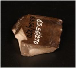 | Description / विवरण | A chert flake with repaired marks at right side of ventral side. |