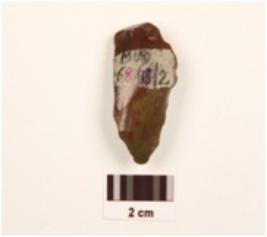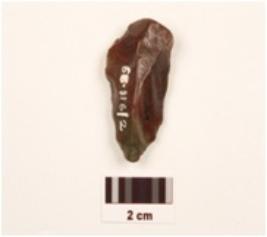 | Description / विवरण | A point made of red jasper on an end struck flake, prepared platform, prominent bulb at ventral side, cross flake scars on dorsal surface, retouched working edges. |