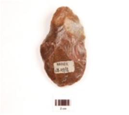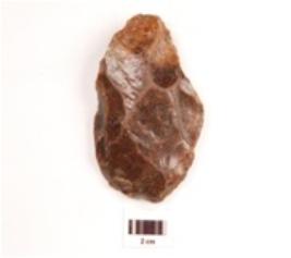 | Description / विवरण | Scraper made on chert, regular retouches along the cutting edge, flake scars on both sides, oval in section. |