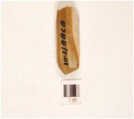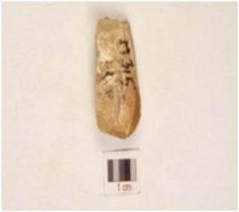 | Description / विवरण | A chert fluted core four blade scars and cortex on the surface and prepared platform on the proximal end. |