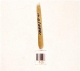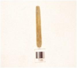 | Description / विवरण | A chert blade, blade scars on the surface, prepared platform on the proximal end, distal end intact and prominent bulb on the ventral side. |