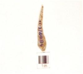 | Description / विवरण | A blunted blade mid ridge on dorsal, prepared platform on the proximal end, prominent bulb on the ventral side and use wear marks on the cutting edges. |
