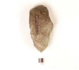 | Description / विवरण | A scraper, flake scars on the surface, negative bulb on the ventral side, prepared platform on the proximal end and marks on the cutting edges. |