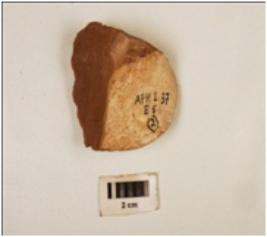 | Description / विवरण | Chert core with a prepared striking platform, five flake scars visible with negative scar, part of cortex visible on surface. |