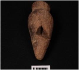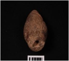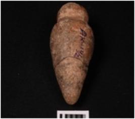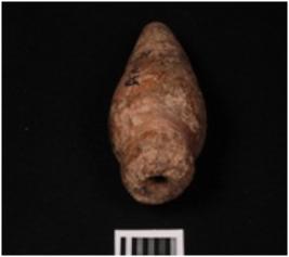 | Description / विवरण | A plumb with a conical top and tanged bottom with a groove at the centre, traces of chocolate slip. |