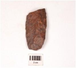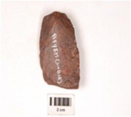 | Description / विवरण | A quartzite stone side scrapper, made on end struck flake, prepared platform, ridge on dorsal surface, irregular retouch at cutting edge. |