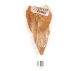 | Description / विवरण | A scraper made on side struck chert flake, prepared platform, diffused bulb on ventral side, cutting edges with irregular retouches. |