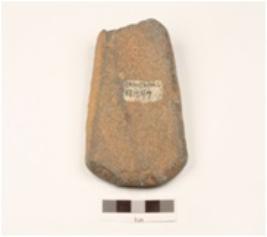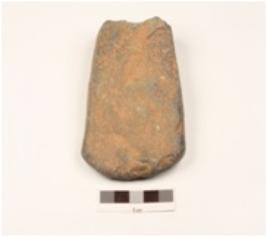 | Description / विवरण | Celt made on quartzite flake with broad working blunt edge, distal end broken, rectangular in section, flat sides. |