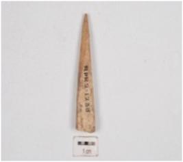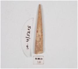 | Description / विवरण | Fragment bone point with smooth surface, rectangular cross-section, and pointed at one end and broken at other |
