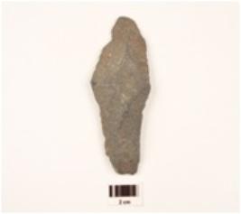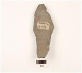 | Description / विवरण | Scraper made on end struck quartzite flake with prepared platform, flake scars on dorsal side and negative bulb on ventral side, retouched marks along cutting edges, trapezodial in section. |