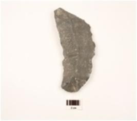 | Description / विवरण | End struck flake made on quartzite with prepared platform, ridge on a dorsal side and prominent bulb on ventral side, cutting edges, triangular in section. |