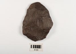 | Description / विवरण | Stone side scraper made on a flake chocolate colour with flake scros. |