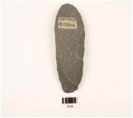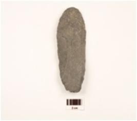 | Description / विवरण | Scraper made on end struck quartzite flake with prepared platform, flake scars on dorsal side and prominent bulb on ventral side retoched marks along wavy cutting edges, plano-convex in section. |
