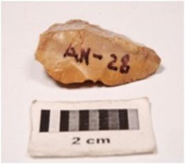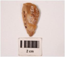 | Description / विवरण | Side scraper on flake detached flakes on dorsal and ventral surface3, indirect percussion technique, regular retouching on distal ends, prominent bulb at ventral surface. |