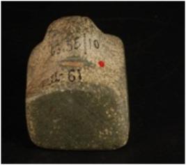 | Description / विवरण | Burnished stone for the purpose of burnishing the objects, smooth surface with flat bottom and broken from knob. |