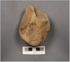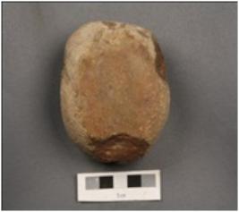 | Description / विवरण | A Stone grinder, irregular circular shaped, flat polished base, rough surface. |
