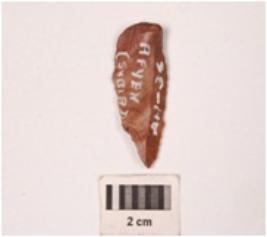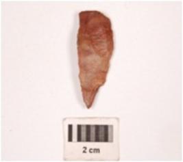| Description / विवरण | Chert point, use marks, flake scars on dorsal surface, diffused bulb at proximal end. |
